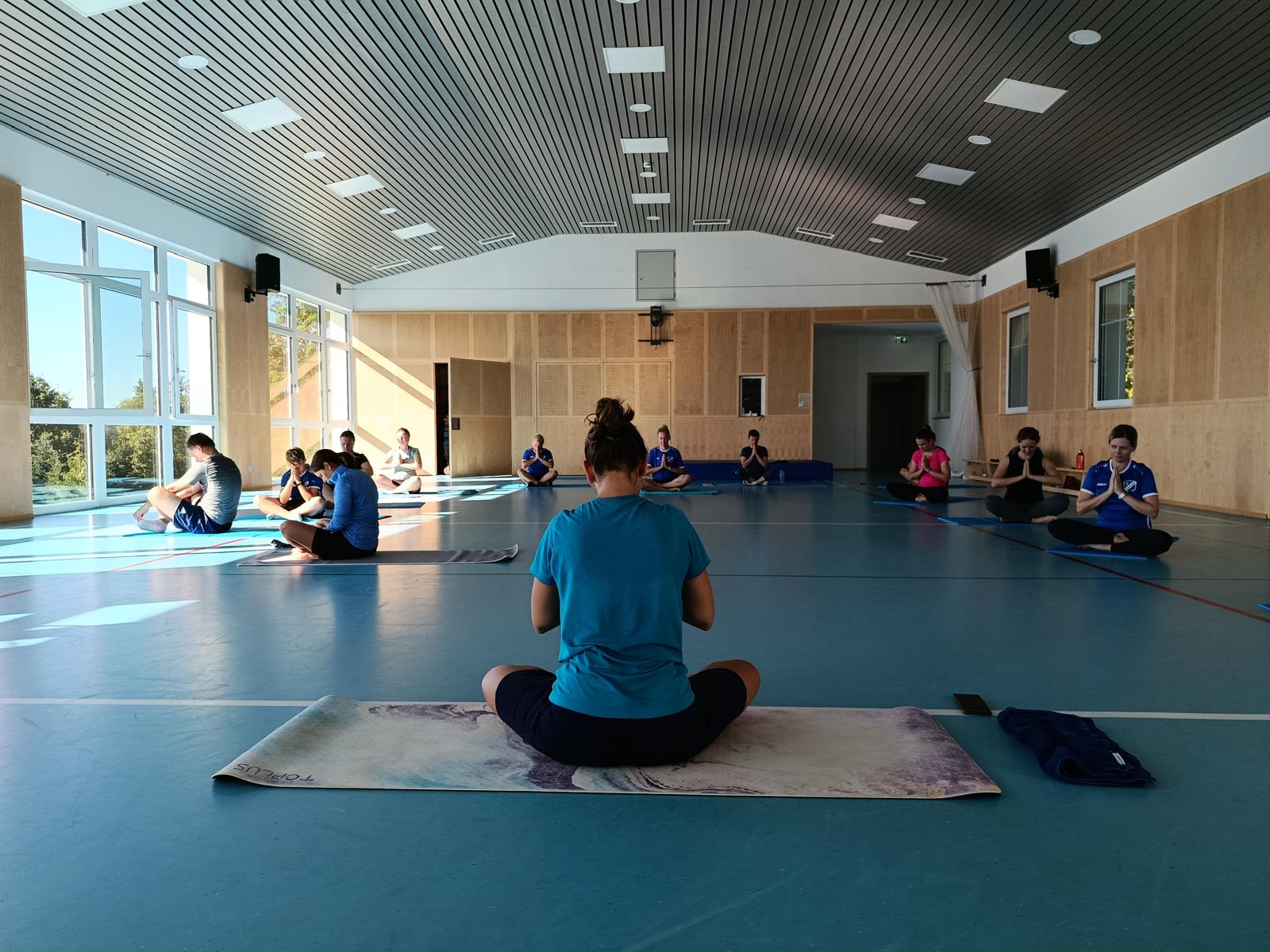 Nach dem Lauftraining folgte diesmal eine halbstündige Yogaeinheit bei Caro. Dabei dehnten und entspannten sich die Läuferinnen und Läufer.