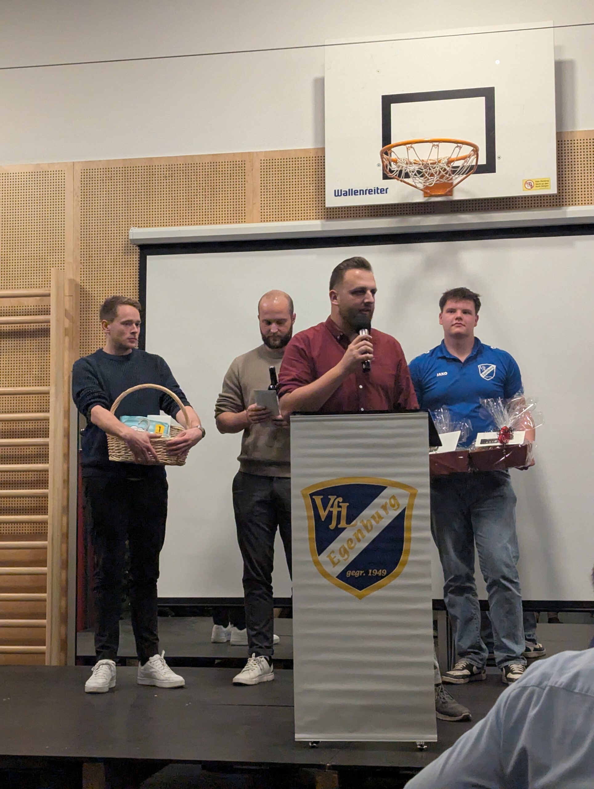 Auch die Fußballabteilung, die die Weihnachtsfeier traditionell ausrichtet, nutzte den Abend, um ihren Trainern sowie der Abteilungsleitung zu danken. Ein ganz besonderer Dank galt Peter Gude, der über viele Jahre hinweg Jugendmannschaften trainierte. Sein großes Engagement und seine hervorragende Arbeit zeigen sich heute deutlich in der ersten und zweiten Mannschaft.